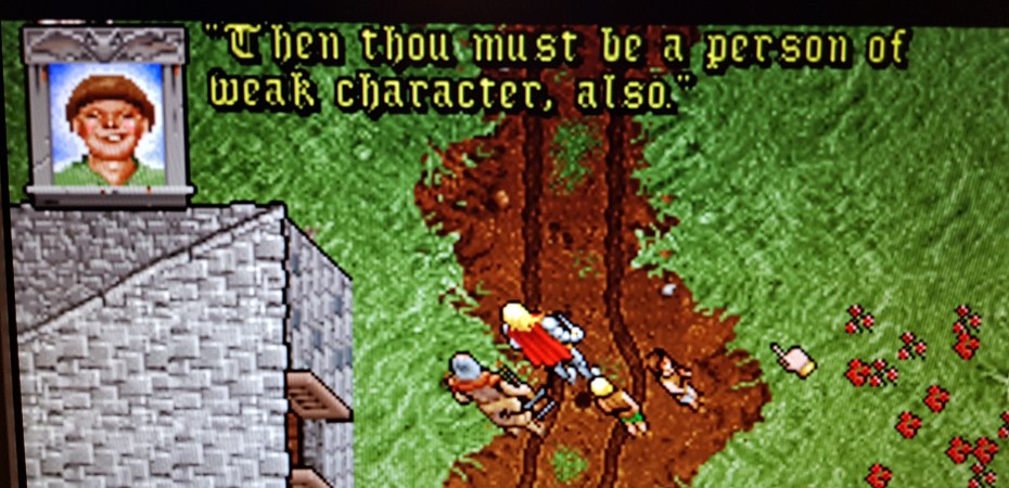 A member of The Fellowship, albeit a very young member, accused the Avatar of being a person of weak character at the Fellowship hall in Paws. That was funny. Further on in Britain, the avatar spoke to Lord British and gathered some quests while talking to a number of people in the castle. Among these was the finding of the avatar’s stuff (check) and talking to the major about the murder a few years back (check). That last one didn’t turn out to be very useful though. I’ll guess the avatar wants to go to the Blue Boar now.