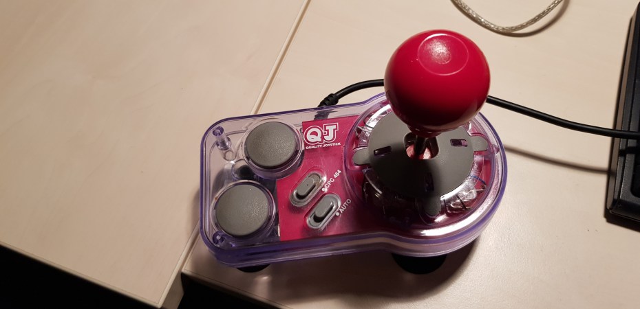 I did this gaming using a new joystick that I got. It is the QJ (Quality Joystick) SV-131 Superstar and it has the stick on the right hand side. I found it online just after I had thought about it. It has micro switches but the stick feels a bit too loose and therefor not as nice as The Arcade joystick, but it’s good enough for occasional gaming.