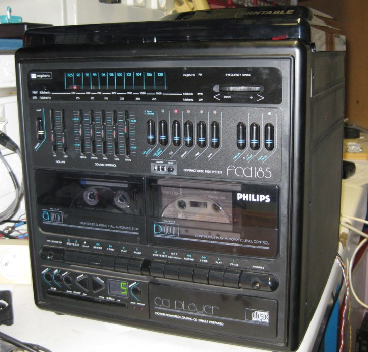 Eventually however, I of course wanted a newfangled CD-player and I moved on. The Sharp has an AV input, so I could have connected a separate CD player to it. But those things were way too expensive and a new Philips FCD185 music system took it’s place.