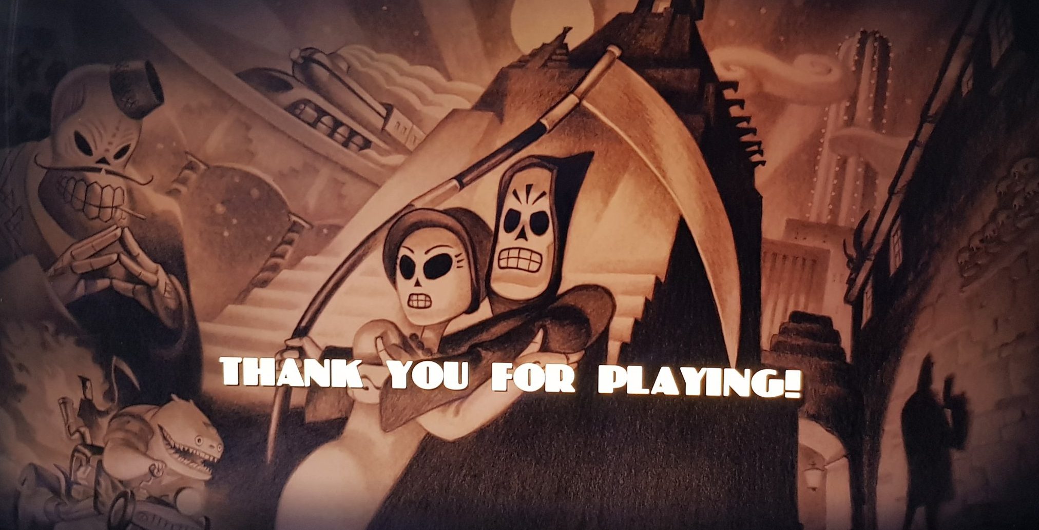 THE END. I’ve won Grim Fandango. The ending was very cool. Especially because the story brings you back to most of the places you’ve been before and right back to the beginning.