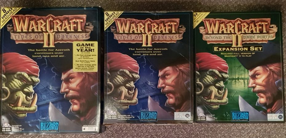I’ve got my hands on the expansion for Warcraft II, Beyond the Dark Portal. I bought it with the original Warcraft II, of which I already had one in my collection. When I compared the two, I noticed that the copy that I already had was slightly bigger than the other one. Must be another release, probably US or something. They always like their stuff a little bigger.
