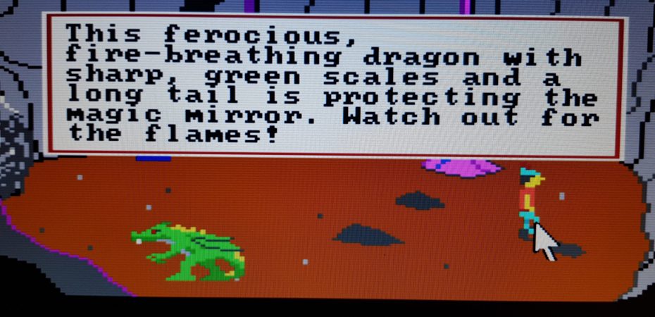 And I did just that, I started with the original King’s Quest: Quest for the Crown for IBM PC from 1987. I played for a few hours. After first mapping out all the screens, I had already collected the necessary ingredients for pacifying a rat and some leprechauns. But I still needed something to crawl through a tiny hole. That also didn’t take long to figure out. I was very impressed with myself that I’d figured out how to get to this stage, especially because I’m not very good at figuring stuff out in adventure games.