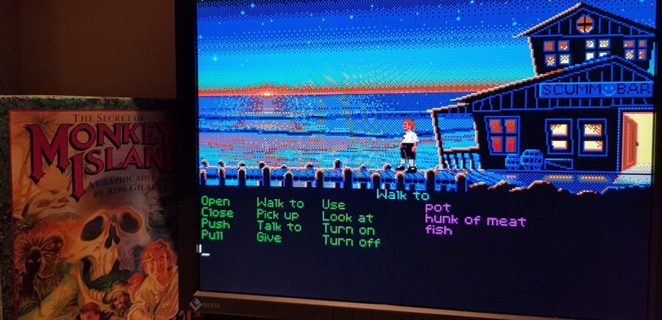 I’m playing the EGA version with proper MT-32 sound and sound effects through ScummVM on the RetroPie setup. I’m loving the gorgeous pixel art and of course all the funny jokes. Although I notice that I am missing the voices from the Special Edition. I think I’ve read somewhere sometime that you could voices from the SE to the EGA version. Maybe I’ll try it out. But I’ll probably have too much fun playing it right now and finish the game before I get the chance to set it up.