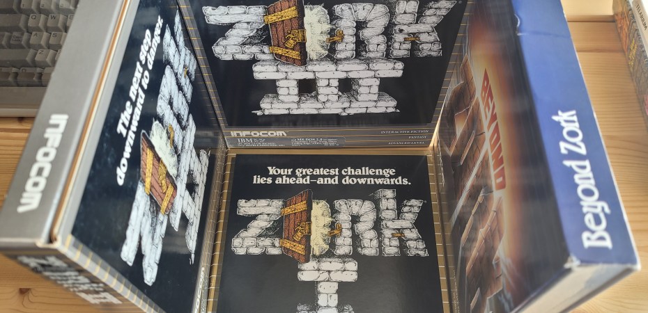 I bought Zork I, II and III for my collection, as well as Beyond Zork. I already had Zork II, but that one was a bit sparse on the materials and it was the Atari ST version. These are all the IBM PC versions.