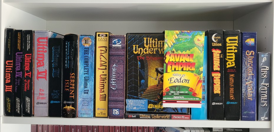 Worlds of Ultima – The Savage Empire fills up my Ultima shelf quite nicely! Any more additions like Ultima 1 or 2 or the expansions to Ultima VII seem unlikely. So this is probably it for the Ultima collection. But I don’t mind. I’m very glad to have all these games in my collection.