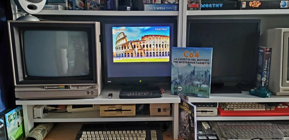 C64 La Cassetta del Misterio or C64 The Mysterious Cassette is a new Amiga game from Darkage Software. It’s a text adventure with graphics that uses photorealistic images that seem AI generated. The requirements are an Amiga with AGA and 2MB of RAM. My Amiga 500 doesn’t support that, so I must play it on another device. When I booted up my MiSTer, I noticed that I haven’t yet set it up with a harddrive partition yet. And the game comes on a USB stick with the Amiga files on it. And I don’t know if or how you would mount that on the MiSTer.