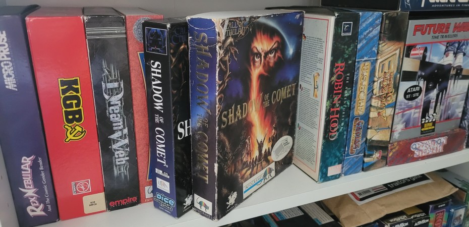 Last year I was excited to finally get my hands on a boxed copy of Shadow of the Comet. Even if it was the relatively cheap CD-ROM version. At least, it was probably cheap back when it was released. Now it’s one of the pricier games on Ebay. And while I am happy to have a boxed copy, I could be happier with a nicer version. The CD-ROM version is bit sparse. Apart from the cheap looking box, it doesn’t contain a paper manual for instance.