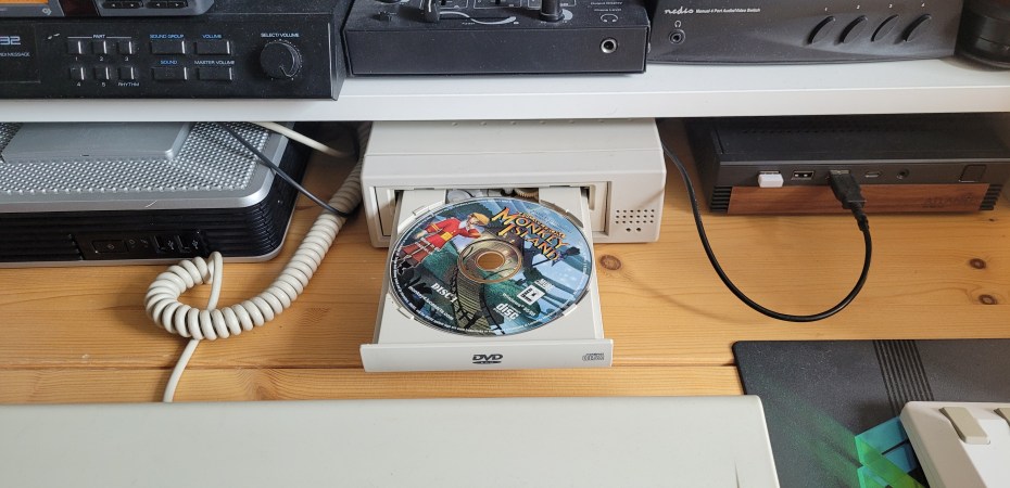 I’ve been using a rather generic looking Samsung USB DVD player for years now. Both for my Windows laptops as well as for my retro systems. The main ones being my MiSTer setup, my Windows 98 thin client and my RetroPie setup. I always have found it jarring that it doesn’t look very retro, with its sleek black design.