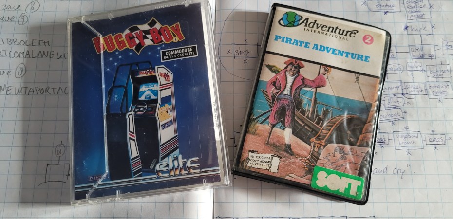 I bought two games for the Commodore 64: Buggy Boy and Pirate Adventure.