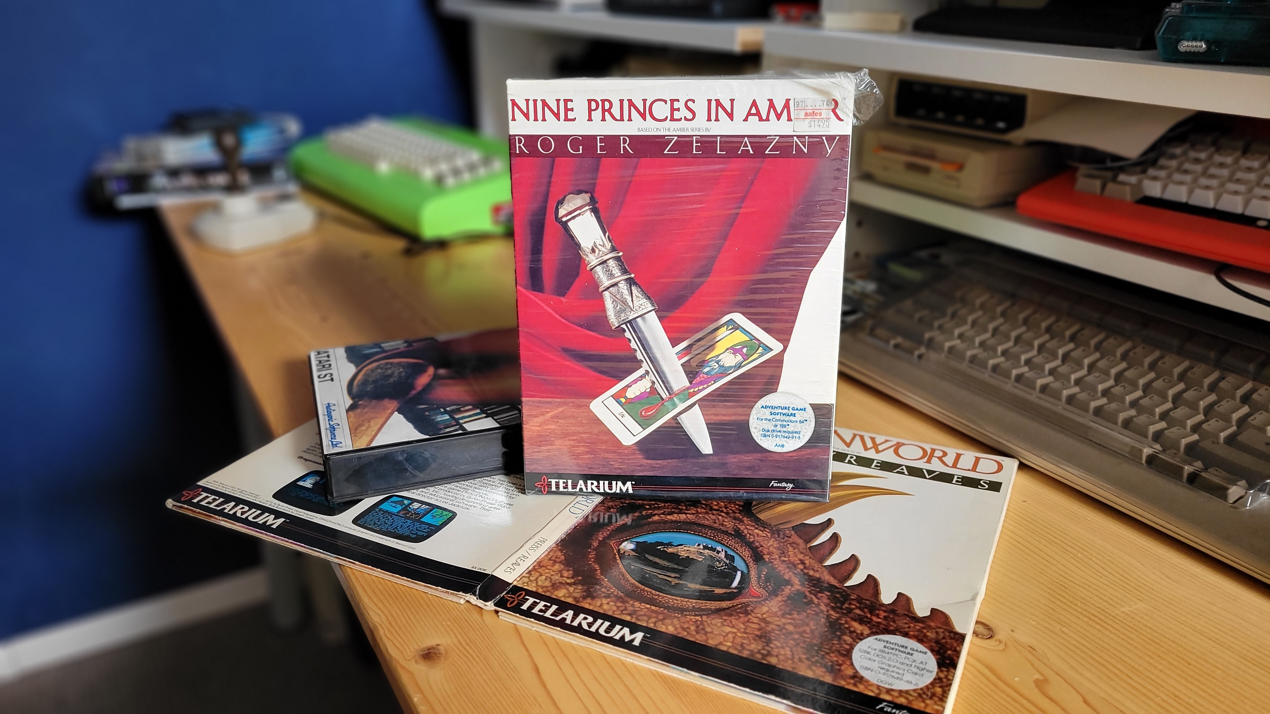 Nine Princes in Amber is the latest addition to my games collection. It’s the third Telarium game, the others being Dragonworld and Fahrenheit 451.