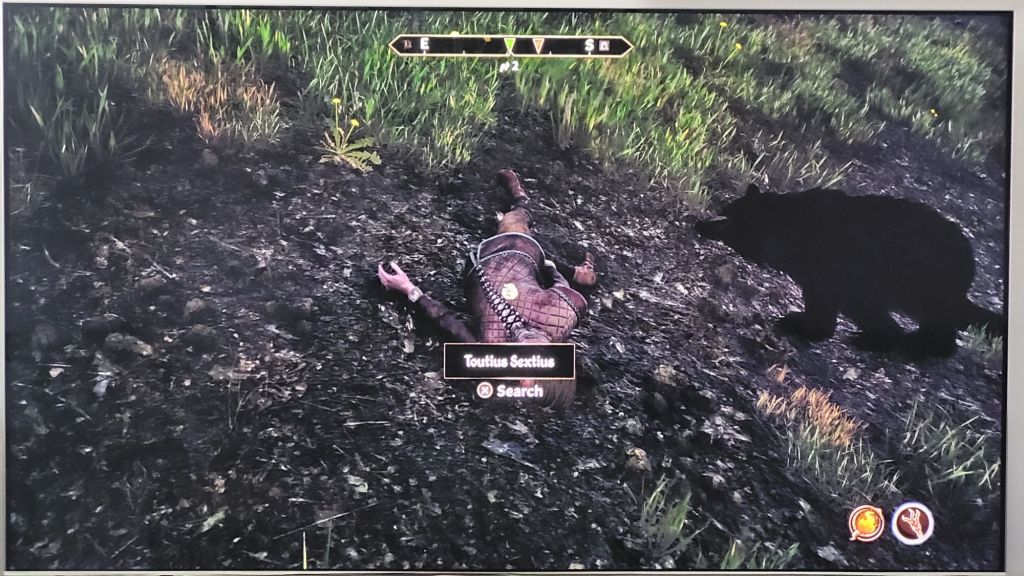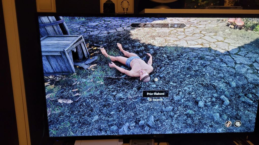 Other Oblivion specific weirdness: Why does nobody bury poor prior Marobel? He’s been lying dead in front of Weynon Priory for weeks now. And before you wonder why he’s naked: That’s because I wanted a robe because I’m a mage and those are not easily found in the early game. I wanted to put them back on, but I couldn’t. So please will somebody take care of him!