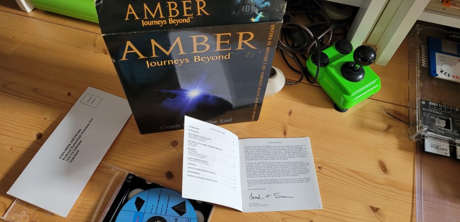 Amber: Journeys Beyond is a game from 1996, the era where big box pc games were largely empty and Amber is no exception. There’s only the jewel case with the little square manual that fits inside that.