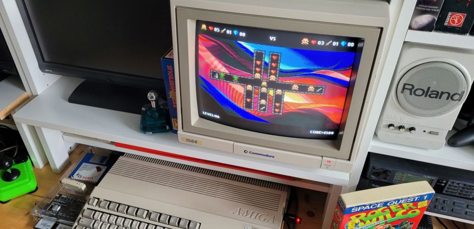 The awesome IndieRetroNews posted about a game that’s right up my alley: Pjusk, a puzzle game from Zooperdan for the Amiga. I quickly bought it to have an excuse to power up my Amiga 500. It reminds me a bit of Worthy, a game that together with Shadow Switcher for the C64, started my interest for new games for old systems in 2018.