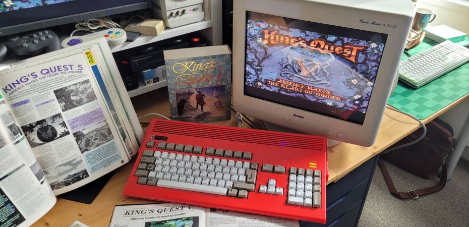 It’s been a while since I last played a King’s Quest game. So the time is right for another adventure, the fifth installment in the series. I started by copying all the files from the floppies to a MisterFS shared folder on the ao486 core on the MiSTer. Sadly, I cannot dir into the folder from inside MS-DOS. Probably something with the memory managers. When I select only conventional memory, I can get the volume recognized, but still no dir.