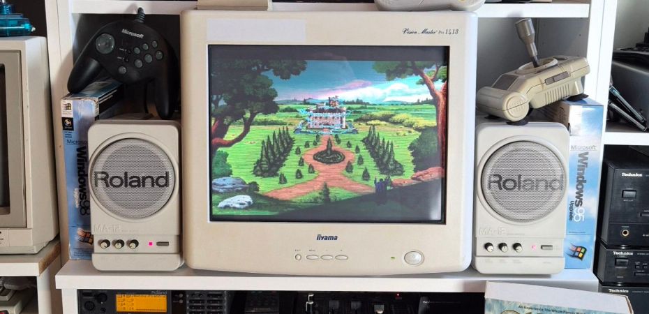 I made some changes to my retro computer setup and I think it worked out really well. It certainly made me want to play more old PC games. I put my MiSTer in an Amiga 1200 case with the MiSTress 1200 I/O board and I changed my LCD for a CRT VGA monitor. I had to put in some extra shelves to support that thing and reorganize some of the games and accessoires around it, but now it feels like a really cosy setup.